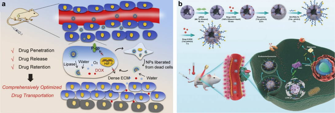 As the first-line treatment strategy against cancer, chemotherapy has made tremendous achievements in suppressing tumor proliferation, preventing metastasis, and prolonging patients' lives [20]. Commonly used chemodrugs such as doxorubicin (DOX), paclitaxel (PTX), docetaxel (Dtxl), and cisplatin (DDP), etc., can effectively destroy cancer cells after being taken up by tumor cells. However, the therapeutic effectiveness of these chemical drugs is always severely compromised by rapid clearance and non-specific distribution, resulting in inevitable systemic toxicity. Additionally, tumor cells will gradually develop a strong resistance pathway against chemotherapy drugs during long-term administration, known as MDR, which is one of the primary reasons for chemotherapy failure. Nowadays, nanomaterial-enabled chemotherapy aims to elevate the efficacy of conventional cancer chemotherapy regimens through diverse strategies.
