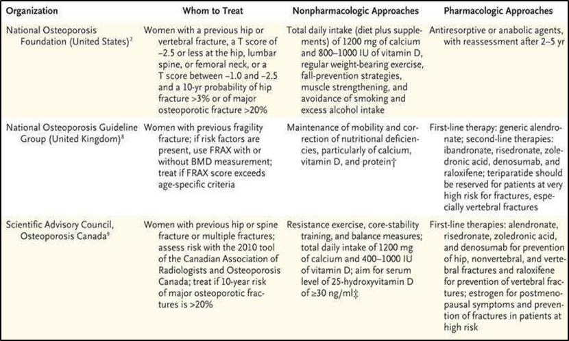 For osteoporosis Non-pharmacological and pharmacological interventions are recommended, depending on fracture risk assessment.