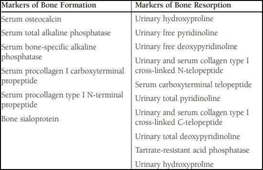 Table 1: Markers for bone formation and bone resorption in serum and urine