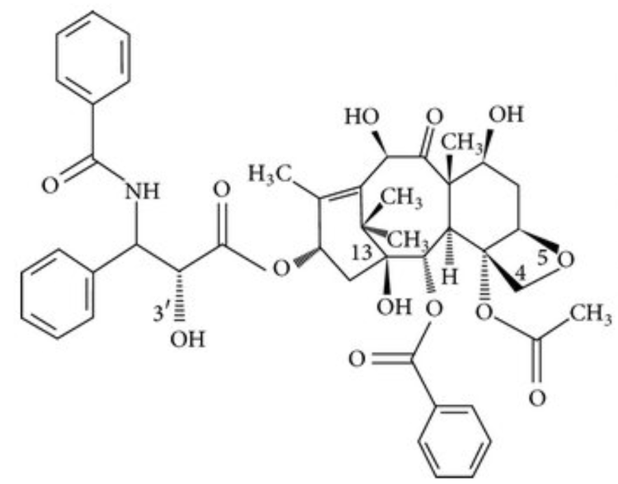 Mechanism of action: Paclitaxel is a diterpenoid anticancer agent originally derived from the bark of Taxus species and is widely used in the treatment of various solid tumors. Its primary mechanism of action involves disruption of microtubule dynamics, which are essential for mitotic spindle formation and successful cell division. Unlike vinca alkaloids that inhibit microtubule polymerization, paclitaxel selectively binds to the β-tubulin subunit of microtubules and promotes their polymerization while simultaneously preventing depolymerization. This results in the formation of abnormally stable and nonfunctional microtubules. Stabilization of microtubules by paclitaxel leads to arrest of the cell cycle at the G2/M phase, as cancer cells are unable to complete mitosis. Prolonged mitotic arrest triggers activation of cell death pathways, ultimately resulting in apoptosis. Paclitaxel-induced apoptosis is primarily mediated through the intrinsic mitochondrial pathway. The drug alters mitochondrial membrane permeability, leading to the release of cytochrome-c and subsequent activation of caspase-9 and caspase-3. Additionally, paclitaxel modulates the expression of Bcl-2 family proteins by downregulating anti-apoptotic proteins such as Bcl-2 and Bcl-xL, while enhancing pro-apoptotic proteins like Bax. In addition to its effects on mitosis, paclitaxel has been shown to influence multiple signaling pathways involved in cancer cell survival and proliferation. It can inhibit the Akt signaling pathway, enhance reactive oxygen species (ROS) generation, and activate stress-related kinases, further promoting apoptotic cell death. Paclitaxel also exhibits anti-angiogenic activity by suppressing endothelial cell proliferation and reducing vascular endothelial growth factor (VEGF) expression, thereby limiting tumor blood supply. Overall, paclitaxel exerts its anticancer activity through microtubule stabilization–mediated mitotic arrest, induction of mitochondrial apoptosis, modulation of survival signaling pathways, and inhibition of tumor angiogenesis. These multifaceted mechanisms contribute to its broad clinical efficacy against a wide range of malignancies [4,7].