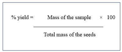 2.3 Percentage yield: The percentage yield of the extracted sample was the calculated using the following formula: