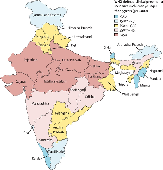 Figure 9: WHO-Defined Clinical pneumonia incidence in children younger than 5 years (per 1000).