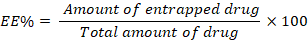 EE%= Amount of entrapped drugTotal amount of drug ×100