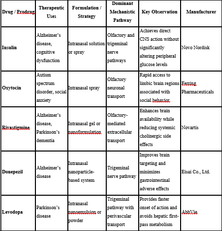 Biopharmaceutic characteristics such as permeability, metabolism, and clearance play a crucial role in determining the extent of nose-to-brain transport. Drugs with high permeability but rapid systemic clearance may still achieve effective brain targeting when delivered intranasally due to direct neuronal transport pathways [12].
