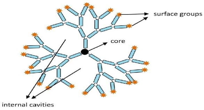 Dendrimers are highly branched, nanosized, polymeric structures with a core, interior branches, and surface functional groups. They are used as carriers in novel herbal drug delivery systems to enhance solubility, stability, and bioavailability of poorly water-soluble herbal compounds like curcumin, berberine, and ursolic acid. Drugs can be loaded into dendrimers by encapsulation, electrostatic adsorption, or covalent bonding, allowing controlled and targeted delivery. Surface modification (e.g., PEGylation) reduces toxicity and improves compatibility. Despite their advantages, issues like cytotoxicity and high production cost limit large-scale use. Overall, dendrimers hold great promise for targeted and efficient delivery of herbal bioactive.