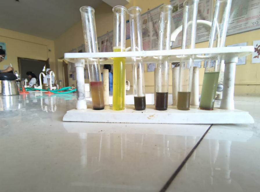 To 0.5ml of extract add 1ml water and 5-8 drops of Fehling’s solution. were added at hot. The observation of brick red precipitate indicates the presence of reducing sugar
