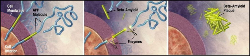 It is thought that Alzheimer's disease develops when the brain accumulates abnormal amounts of amyloid beta (AB), which can build up intracellularly as neurofibrillary tangles or extracellularly as tau proteins and amyloid plaques. This impairs neuronal connectivity and function, leading to a progressive loss of brain function. [16] Age-related, brain cholesterol-regulated, and linked to other neurodegenerative disorders, this reduced protein clearance ability [17]