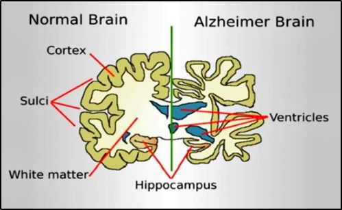 Figure No. 1 Brain structure a) healthy brain and b) Alzheimer’s Disease
