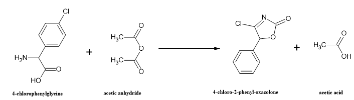 Heat 1.75 g (10 mmol) 4-chlorophenylglycine with 10 ml acetic anhydride at 100°C for 2 hours. Pour into cold water (100 mL) to precipitate the compound. Separate by filtration and purify using silica gel chromatography with an ethyl acetate/hexane (3:7) solvent mixture60.
