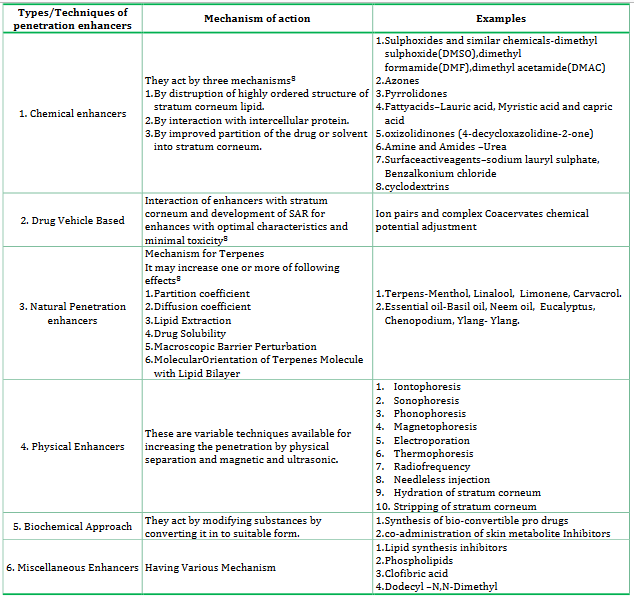 Table 1: Classification Of Penetration Enhancers
