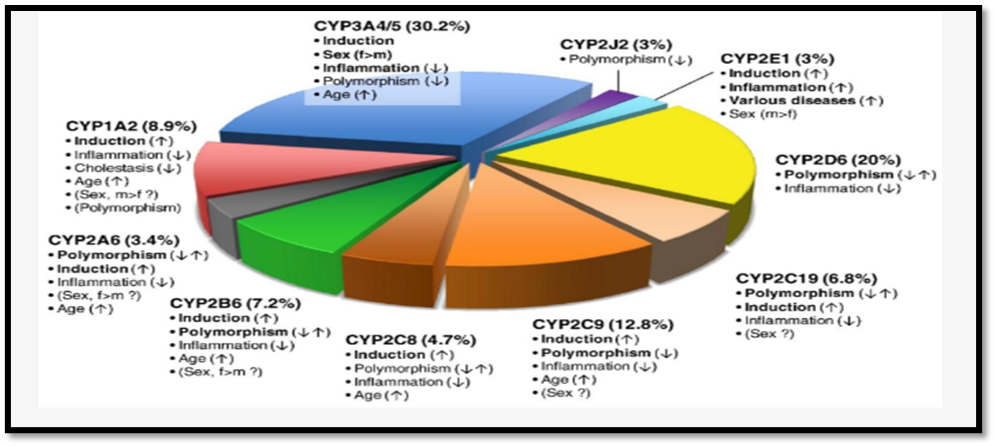 Fig no 2: Influence of CYP450 genetic polymorphisms on drug metabolism and clinical outcomes. Poor metabolizers accumulate drugs, risking toxicity, whereas ultra-rapid metabolizers may have sub-therapeutic effects.