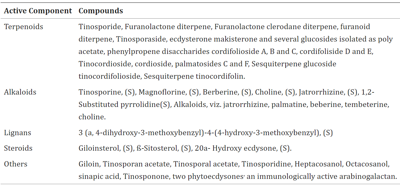 Table 1: Essential constituents of T. cordifolia