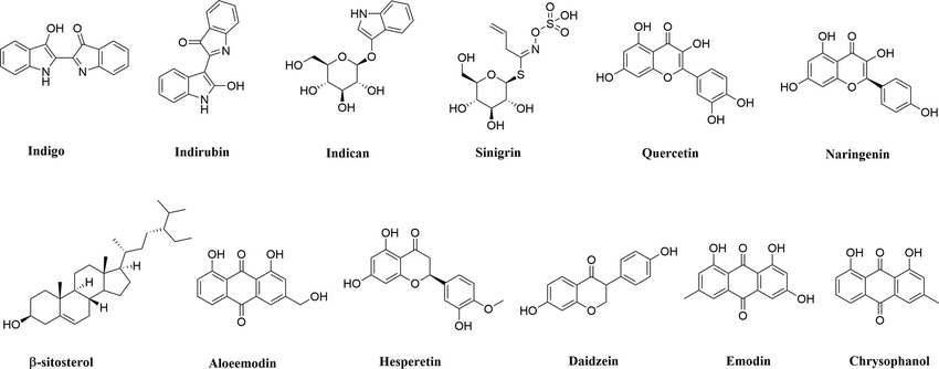 The roots include the following chemical constituents (1) Alkaloids: indigotin, isatin, indirubin, [64] indoxyl-β-glucoside, 2,5-dihydroxy-indole, 2,3-dihydro-4-hydroxy-2-oxo-indole-3-acetonitrile, indole-3-acetonitrile-6-O-β-D-glucopyranoside,[77] hydroxyindirubin, isaindigodione, (E)-3-(3',5'-dimethoxy-4'-hydroxybenzylidene)-2-indolinone, 3-formyl-indole, deosyvasicinone, isaindigotone, tryptanthrin,[78] 3-(2'-carboxyphenyl)-4(3H)-quinazolinone, 4(3H)- quinazolinone, 3-(2'-hydroxyphenyl)-4(3H)-quinazolinone, isaindig otidione, Isatan A,[79] 3-[2'-(5'-hydroxymethyl)furyl]-1(2H)-isoquinolinone-7-O-β-D-glucoside, 2,3-dihydro-1H-pyrrolo[2,1-c][1,4]benzodiazepine-5,11(10H,11aH)-dione.[80] (2) Flavonoids: [81-83] neohesperidin, liquiritigenin, isoliquiritigenin, isovitexin, linarin, eupatorin. (3) Lignans: [72] (-)-lariciresinol, lariciresinol-4-O-β-D-glucopyranoside, lariciresinol-4,4'-di-O-β-D-glucopyranoside, 4-(1,2,3-trihydroxypropyl)-2, 6-dimethoxyphenyl-1-O-β-D-glucopyranoside, syringin, (+)-isolariciresinol. (4) Organic acids: [84] 3-pyridinecarboxylic acid, maleic acid, 2-hydroxy-1,4-benzenedicarboxylic acid, benzoic acid, salicylic acid, syringic acid, palmitic acid, succinic acid, 2-amino benzoic acid, 5-hydroxymethyl furoic acid. (5) Anthraquinones: [85] emodin, emodin-8-O-β-D-glucoside. (6) Steroids: [86] β-sitosterol, daucosterol, γ-sitosterol. (7) Sinigrins: [87] 3-indolylmethyl gluosinolate, neoglucobrassicin, 1-sulpho-3-indolylmethylgluosinolate. (8) Sulfur compounds: [88] epigoitrin, 1-thiocyano-2-hydroxy-3-butene. (9) Amino acids: [89] praline, arginine, tyrosine, valine, glutamic acid, γ-aminobutyric acid, leucine, tryptophan, aspartic acid, L-threonine, β-hydroxyalanine, glycine, isoleucine, phenylalanine, histidine, lysine. (10) Nucleotides: [90] uridine, hypoxanthine, uracil, adenosine, guanine. (11) Others: [91-94] ammonium formate, sucrose, 5-hydroxymethyl-furaldehyde, n-butyl-O-β-D-fructopyranose, mannitol, pyrophaeophorbideα, polygalitol.
