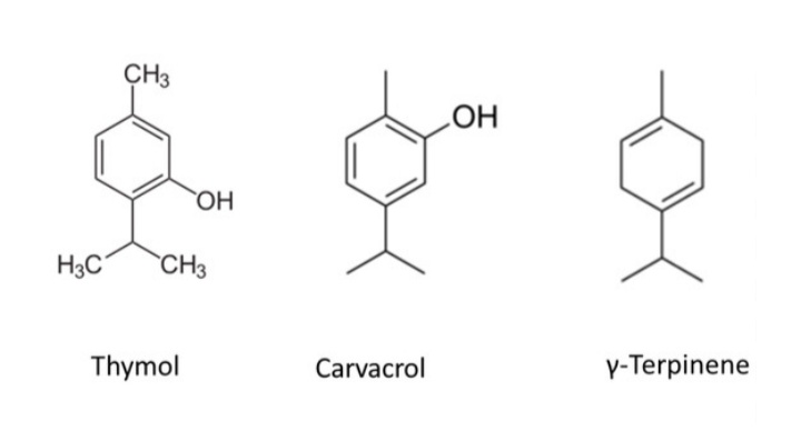 The mineral composition of ajwain seeds is 7.1%, which includes elements like calcium, phosphorus, iron, and nicotinic acid. Protein(15.4%), carbohydrates(38.5%), tannins, glycosides, water(8.9%), fat(18.1%), saponins, and flavones3 are among the other components. Of the 2% to 4% brownish essential oil that ajwain fruits generate, thymol makes up the preponderance, ranging from 35% to 60%48. Carvacrol, dipentene, βterpinene, α-and α-pinenes, α-terpenine, and paracymene are all components of the nonthymol fraction. Other compounds found in the plant include camphene, myrcene, and α-3-carene, although in smaller amounts. There is a highly hydrating saponin in the alcoholic extracts. Glucoside, 6-O-βglucopyranosyloxythymol, a steroid-like molecule, and a yellow crystalline flavone are all present in the fruits. Additionally, there is 25% oleoresin and 12% volatile oil, which includes thymol, γ-terpinene, para-cymene, and α- and β-pinene. The oil extracted from T. ammi mostly contains limonene (38%), carvone (46%), and dillapiole (9%) (3).