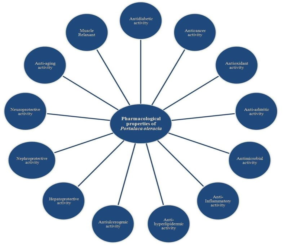 According to reports, Portulaca oleracea possesses a number of pharmacological properties that support both its medicinal efficacy and its significance as the meal that functions Throughout history, P. oleracea has been utilised for a variety of therapeutic applications [1].