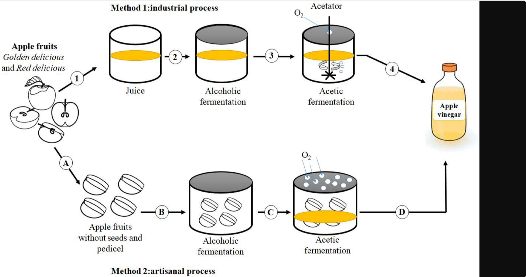 6.Acetic Fermentation (Oxidation Phase): Acetic acid bacteria convert ethanol into acetic acid, giving the vinegar its acidity and antimicrobial properties.[24]