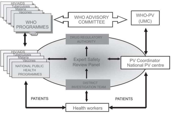 The use of medicines is an important aspect of many PHPs that are designed to improve the health of a target population. Their cost to the health budget is between 6% in developed countries and 45% in some developing countries, but there are huge variations between both developed countries and developing countries. Medicines are important not only because of their capacity to treat and prevent disease and to support PHPs, but also because the confidence of the public in the health policies of their countries is inextricably linked to their confidence in the availability of medicines that are safe and effective. All medicines carry some risk of harm and it is important to monitor their effects, both intended and unwanted, so that good evidence is available upon which to base an assessment of risk versus effectiveness or risk versus benefit. Furthermore, particularly with new medicines, the early identification of unexpected adverse reactions and their risk factors is essential, so that the medicines can be used in an informed manner with the least chance of harm. This is the role of pharmacovigilance. Information gathered during pharmacovigilance may also assist in selecting the most appropriate medicine for future use. Despite the progress that has been made in pharmacovigilance, the burden on public health of adverse reactions to medicines (traditionally referred to as ADRs) remains significant. Pharmacoeconomic studies on the costs of ADRs suggest that governments pay considerable amounts from their health budgets towards covering the costs associated with them. In a meta-analysis of 39 prospective studies from hospitals in the United States, it was shown that ADRs ranked from the fourth to sixth leading cause of death [1]. Extrapolation of data, from a more recent prospective study in England to the whole National Health Service bed base, suggests that for patients aged > 16 years, at any one time the equivalent of up to seven 800-bed hospitals may be occupied by patients admitted with ADRs. There are also costs associated with ADRs in primary health care, but these are more difficult to assess. To the direct costs should be added the indirect costs of adverse reactions, such as loss of productivity. There are now sufficient data available to indicate that the provision of adequate strategies to detect and prevent adverse reactions is a cost- effective commitment of resources. Health requirements and the use of medicines in different countries vary considerably for many reasons, including different burdens of disease, economic, ethnic, cultural and dietary factors, and the level of development of a system for the regulation of medicines. Vigilance regarding both safety and effectiveness of medicines must become a priority area within public health. WHO has produced guidelines for setting up a national pharmacovigilance canter and many WHO PHPs have developed their own guidelines. The vaccines example is included in Annex 1. This document offers a critical examination of the strengths and weaknesses of both pharmacovigilance systems and public health systems. It describes the roles and responsibilities of all parties involved and anticipates the developments that will be necessary to enable both pharmacovigilance and PHPs to meet the challenges of the coming years. The increasing public expectation of safety is one of the major elements of the need for improving the safe use of medicinal products. As effective medicines become more widely available, there is an increasing demand for their use by the public and it is imperative that these medicines are monitored for safety. National pharmacovigilance centers cannot address this issue alone. They need to work together with other parties including the local regulatory authority, managers of PHPs, health professionals, academia, governments, the pharmaceutical industry, patients and consumers, and the media [2,3].