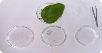 Trim a small section of the leaf, approximately 1 cm x 1 cm, using a clean razor blade or sharp scissors. Place the leaf section in a petri dish containing water or a drop of glycerine to prevent dehydration and maintain its natural structure. With the help of a phloroglucinol solution as a clearing agent. The leaf section is removed from the clearing solution and transferred to a microscope slide using fine forceps. Add a drop of water or a mounting medium (e.g., glycerine) to the leaf section on the slide. Carefully place a coverslip over the leaf section, ensuring that no air bubbles are trapped. Press down the leaf gently to flatten the leaf and minimize distortion. Place the prepared slide on the stage of the compound microscope and start with the lowest magnification, 40x or 100x objective lens. Gradually increase the magnification to examine different regions of the leaf18.