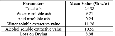 Proximate analysis of Couropita guianensis reveals a considerable ash concentration (24.38% w/w), with water-insoluble ash (9.21% w/w) and acid-insoluble ash (0.94% w/w) indicating mineral composition. Its water-soluble extractive (11.28% w/w) and acid-soluble extractive (10.44% w/w) values point to soluble bioactive chemicals. These elements are most likely responsible for its possible immunomodulatory effect. Extract also have compounds such as alkaloids, phenolics, and flavonoids that upregulate the immunological responses by cytokine synthesis modulation and increased immune cell activity6. Furthermore, the loss on drying (8.98% w/w) indicates moisture content, which influences the stability of bioactive chemicals important for immunomodulation7. Couropita guianensis shows promise as a natural immunomodulatory agent.