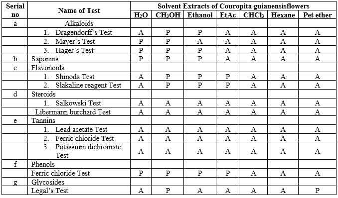 Table no.3 Phytochemical analysis of Couropita guianensis flowers