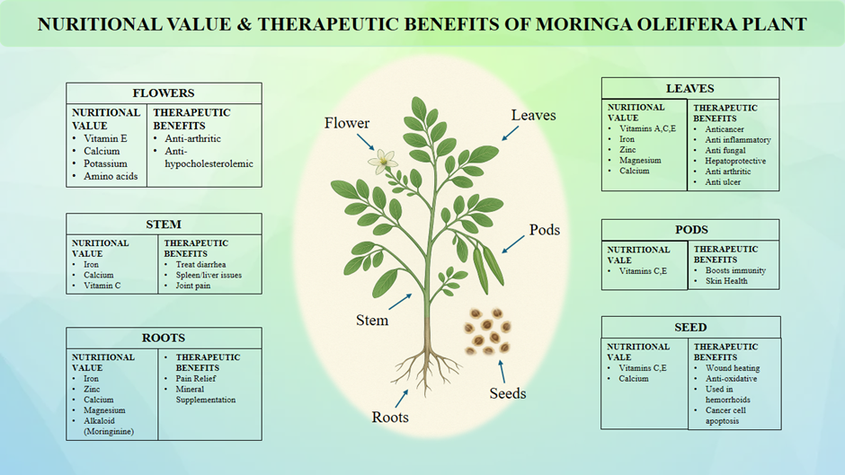Aditi Anand, Faizi Alam, Subham Roy*, Chayanika Goswami, Phytochemicals and Health Benefits of Moringa Oleifera: A Comprehensive Review, Int. J. of Pharm. Sci., 2025, Vol 3, Issue 6, 3525-3537. https://doi.org/10.5281/zenodo.15719540