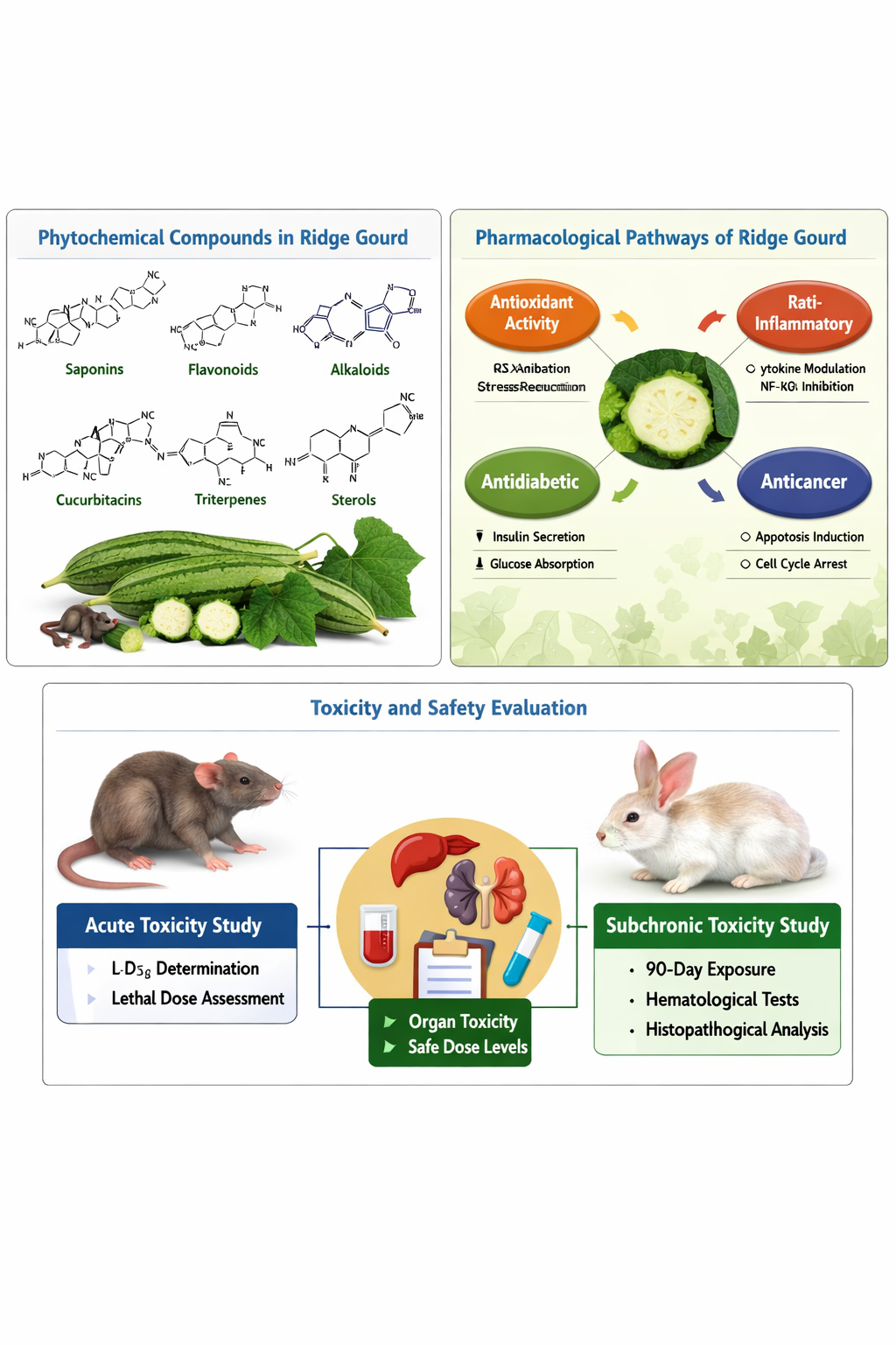 The safety evaluation of Luffa acutangula (L.) Roxb. is essential for its development as a nutraceutical or therapeutic agent. Although the plant is widely consumed as a vegetable and used in traditional medicine, scientific validation of its toxicity profile remains relatively limited. Available studies suggest that L. acutangula exhibits low acute toxicity, particularly when consumed in its natural dietary form. However, the safety profile may vary depending on factors such as plant part, extraction method, dosage, and duration of exposure (Bano et al., 2025; Madhumathi et al., 2026).