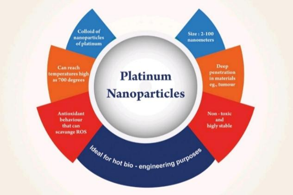 Because of their ability to treat diseases linked to oxidative stress, like diabetes, atherosclerosis, cancer, and rheumatoid arthritis, platinum nanoparticles have become widely recognized.