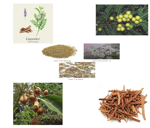 Glycyrrhiza glabra (Mulethi), Phyllanthus emblica, Cinnamomum verum |
