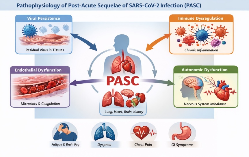 The Coronavirus Disease 2019 (COVID-19) pandemic, caused by the severe acute respiratory syndrome coronavirus 2 (SARS-CoV-2), has resulted in profound morbidity and mortality worldwide. Although acute COVID-19 manifestations have been the primary focus of clinical and research efforts, there is increasing recognition of a subset of individuals who experience prolonged or new-onset symptoms after recovery from the acute phase (Nalbandian et al., 2021). These persistent symptoms are collectively referred to as Post-Acute Sequelae of SARS-CoV-2 Infection (PASC) or Long COVID (World Health Organization [WHO], 2021). PASC represents a major post-pandemic challenge with substantial implications for patient quality of life, health care systems, and societal productivity.