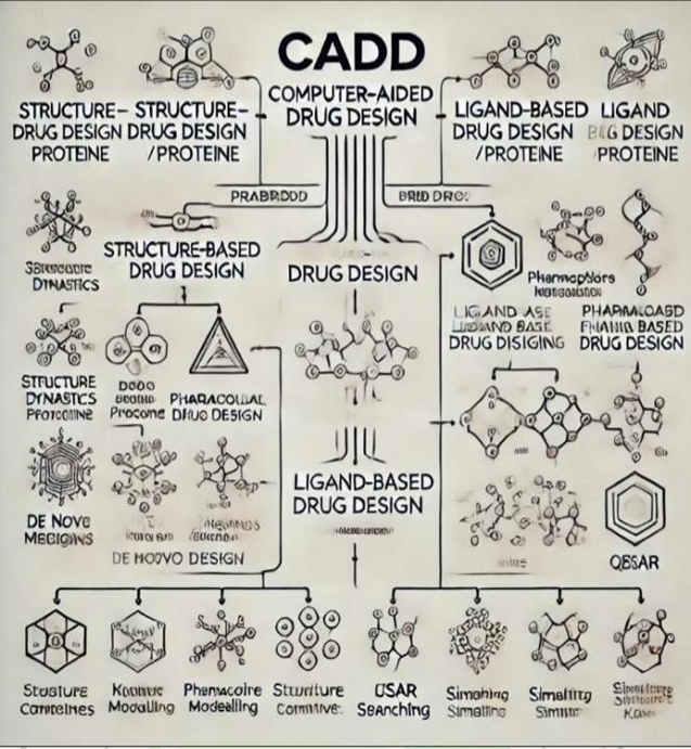 Drug Design (SBDD), which utilizes the three-dimensional structure of biological targets, such as enzymes or receptors, to design molecules that can effectively bind to them (4). For example, inhibitors targeting HIV protease or cancerrelated kinases often rely on SBDD (4,5). Another approach, Ligand-Based Drug Design (LBDD), uses information from known active compounds to design new molecules with similar biological activity (3,19). Common techniques in CADD include molecular docking, virtual screening, pharmacophore modeling, and QSAR analysis (2,19).