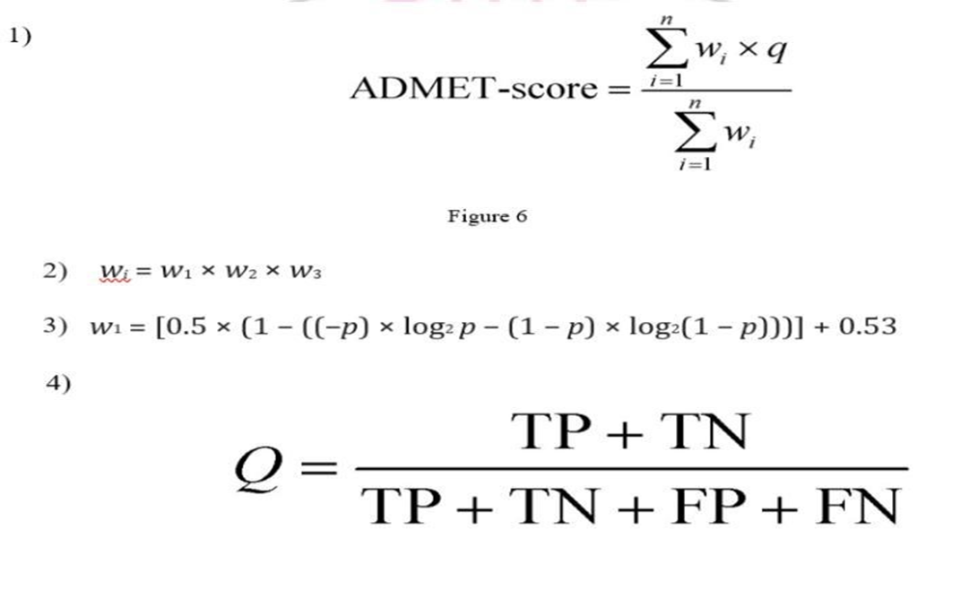 Numerous in silico models predict ADMET properties. One approach is the ADMET-score, which evaluates drug-likeness based on 18 ADMET endpoints predicted via the admetSAR web server. Each property is weighted according to model accuracy, pharmacokinetic importance, and usefulness ([23],[24]).