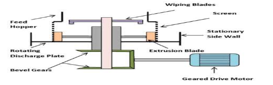 Gravity feed extruders include rotary cylinder and rotary gear extruders, which primarily differ in the design of their two counter rotating cylinders. In the rotary cylinder extruder, it contains pressure roller solid cylinder that works alongside one rotating hollow perforated cylinder. In rotary gear extruders, two hollow counter rotating gear cylinders with counter board holes are used23.