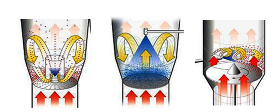 A: Bottom Spray, B: Top spray, C: Tangential spray