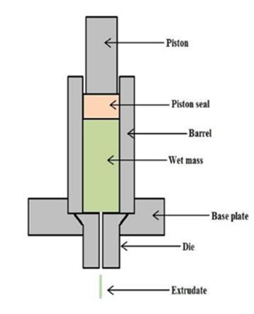 Extrusion is a process where pressure is applied to a wet mass until it passes through the calibrated openings of a screen or die plate of the extruder and further shaped into small extrudate segments. The extrudates must have sufficient plasticity in order to deform, but excessive plasticity can cause sticking of extrudates. The diameter of the segments and the final size of the spheroids depend on the diameter of the openings in the extruder screen12.