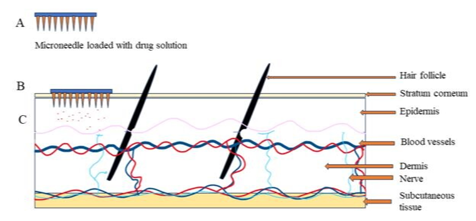 Transdermal drug delivery using microneedle (MN) technology has gained increasing attention in recent years due to its potential to improve patient access to medications while offering a less invasive alternative to traditional administration routes²?. Microneedles are available in several forms including solid, coated, dissolving, and hydrogel-based designs each with distinct advantages for specific applications. Ongoing clinical trials continue to expand the scope of MN applications by exploring their use with a variety of therapeutic agents. Their primary advantage lies in delivering drugs through a minimally invasive approach that preserves the protective barrier function of the skin, while reducing pain and discomfort compared to hypodermic injections. Notably, studies have shown that MN application induces significantly less anxiety than conventional injection techniques, a factor that may improve adherence, particularly in pediatric populations²?. From their origins in simple skin patches to their integration into advanced point-of-care systems, microneedles have transformed the field of transdermal pharmaceutical delivery. With continued research and technological innovation, MN platforms are expected to play an increasingly important role in the future of drug administration.