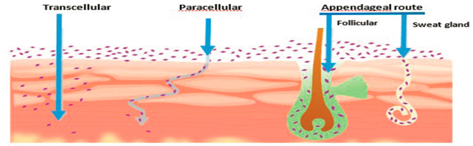 The trans appendageal routes, sometimes referred to as the shunt routes, involve penetration through the sebaceous glands that are connected to the sweat glands and the hair follicles.