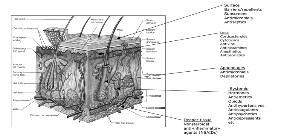 FIG: 2 Anatomy and physiology of the skin show the potential targets or sites of action(9-15)