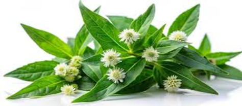 Bhringraj (Eclipta prostrata) is a revered Ayurvedic herb packed with bioactive compounds that offer exceptional benefits for hair health. Rich in wedelolactone, ecliptine, and flavonoids, it exhibits potent antioxidant, anti-inflammatory, and antimicrobial properties that combat scalp infections, dandruff, and hair follicle damage. The presence of nicotine, coumestans, and sterols stimulates blood circulation to the scalp, promoting hair growth and preventing premature graying. Bhringraj is also abundant in iron, magnesium, and vitamin E, which strengthen hair roots, reduce breakage, and improve hair texture.[22] Its natural oils and proteins deeply condition the scalp, preventing dryness, split ends, and excessive hair fall. Regular application of Bhringraj powder or oil can revitalize dormant follicles, enhance hair density, and restore shine, making it a cornerstone of traditional hair care for thicker, longer, and healthier hair. Its adaptogenic properties also help reduce stress-related hair loss, solidifying its status as a holistic remedy for hair rejuvenation.[23]