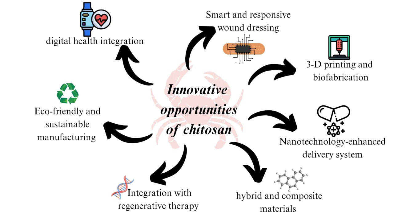 The unique physicochemical and biological properties of chitosan present numerous innovation opportunities for the development of next-generation wound healing systems. Advances in material science, nanotechnology, and biomedical engineering can be harnessed to expand the therapeutic functionality and clinical applicability of chitosan-based formulations.