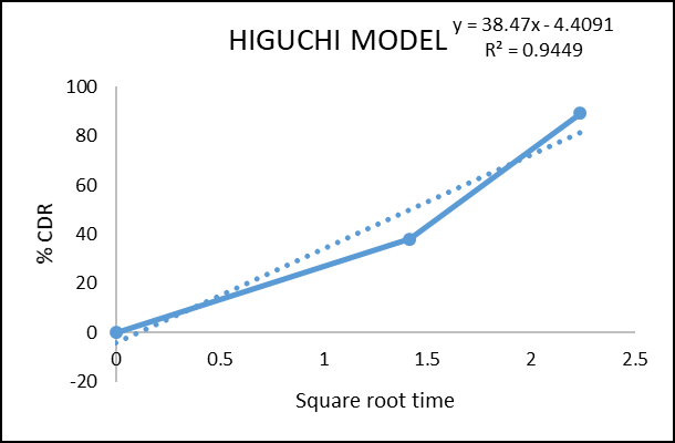 To assess goodness of fit, the in vitro drug release data were subjected to linear regression analysis using multiple kinetic models (fig 8-11).