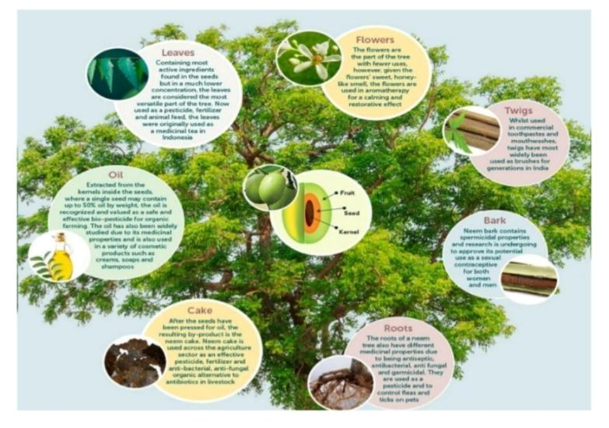 Neem (Azadirachta indica) is a well-known medicinal plant widely used in traditional Indian medicine. It belongs to the family Meliaceae. Neem has been used for thousands of years in Ayurveda, Unani, and Siddha systems of medicine. Almost all parts of the neem tree such as leaves, bark, seeds, flowers, and oil have medicinal value.