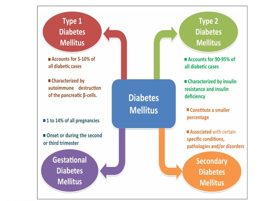 Diabetes Mellitus (Dm) Is Defined By Its Intricate Pathogenesis And Diverse Manifestations. Consequently, Any Classification Of This Disorder Is Somewhat Arbitrary; However, It Remains Beneficial And Is Frequently Shaped By The Physiological Circumstances Present During The Evaluation And Diagnosis. The Current Classification System Is Founded On Both The Etiology And Pathogenesis Of The Disease, Serving As A Valuable Tool In The Clinical Assessment And In Determining The Necessary Treatment. Based On This Classification, Diabetes Is Categorized Into Four Primary Types: Type 1 Diabetes Mellitus (T1dm), Type 2 Diabetes Mellitus (T2dm), Gestational Diabetes Mellitus (Gdm), And Diabetes That Is Induced Or Linked To Specific Conditions, Pathologies, Or Disorders. [5]