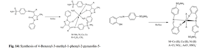 By refluxing sulfanilamide and salicylaldehyde, Ul-Hassan et al. created SCHIFF'S base based on sulfanilamide. An aqueous solution of copper, cobalt, and nickel was refluxed with the hot ethanolic solution of SCHIFF'S base for three hours in order to create the metal complexes. The SCHIFF'S base metal complexes demonstrated a higher affinity for binding to the isoenzymes hCA I, II, and IV than the parent form, and the carbonic anhydrase inhibitory action of SCHIFF'S base was found to be mild-moderate against these vital physiological processes.[8]