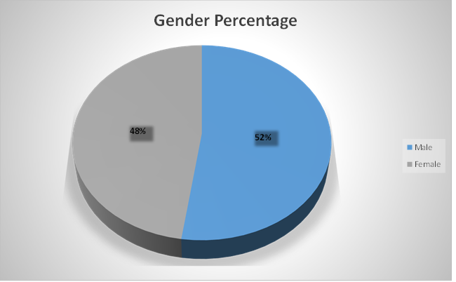 Table 1: This table consist of total no. males and female those are the part of our screening. Male candidates are 102, female candidates are 93 and total no. of candidates are 195.(AS SHOWN IN FIGURE:1)
