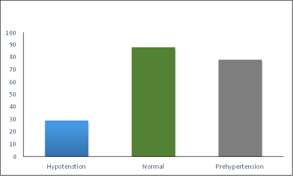 TABLE 4: This consist of the information about the children having hypotension/normal or hypertension. There are approximately 29 patients of children having hypotension, 88 patients having normal blood pressure and 78 are suffering from hypertension. (AS SHOWN IN FIGURE 4).