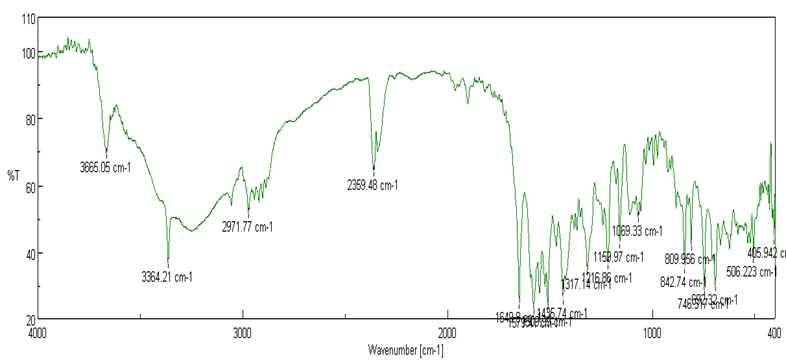 N-H stretching and C=O stretching at 3364.21 cm-1 and 1649.81 cm-respectively. From the Figure it is evident that inliquisolid compact (B) undergoes no chemical reactionwith any of the excipients used in the preparation ofliquisolid compacts.