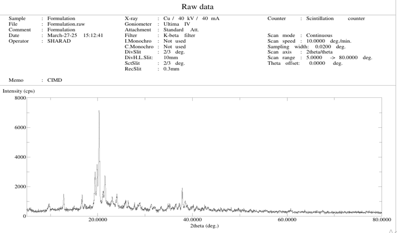 X-ray diffractograms of ATR , and liquisolid formulation were obtained using analytical XRD instrument. The scanning range was from 5-80 degrees.