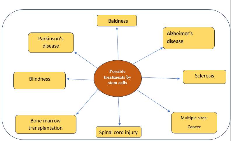 In recent years, study into stem cell therapy has become increasingly promising and advanced. Even the most technologically advanced nations suffer from morbidity and mortality due to issues with their key organs. With the scarcity of transplantable organs, there is increasing optimism that stem cells could be the answer to humanity's longing to be able to replace tissues destroyed by illness and aging. Indeed, it is hard to pick up a newspaper these days and not come across some new apparent "breakthrough" in stem cell research, with the most hopeful ones hoping to discover an elixir of life (1). Stem cells are human body cells that are not specialized. They possess self-renewal capabilities and can differentiate into any type of organism's cell. From the earliest phases of human development until the end of life, every one of us possesses stem cells. The stem cells, which are unspecialized cells, possess the capacity to differentiate into the specialized cells that make up the many tissues found in the human body. Their ability to divide into a wide variety of specific cell types and replenish themselves through mitotic cell division is what distinguishes them (2). Adult cells and developing embryos both contain stem cells. There are multiple specialized stages. A unipotent stem cell can only differentiate into a small number of distinct types of cells compared to a pluripotent one since its developmental potency decreases with each stage (3). The ability to extract stem cells from a human embryo and demonstrate that these cells could be kept in the so-called pluripotent condition was achieved for the first time. Basically, one special quality of stem cells is their pluripotency, which allows them to divide endlessly into daughter cells while also having the ability to develop into any type of human cell when given the right stimulus (4). Since tissue regeneration and cellular replacement are at the forefront of regenerative medicine, several stem cell types, such as human pluripotent stem cells (HPSCS), have been employed to accomplish these goals. Progenitor cells and multipotent stem cells. Thus, this review offers a concise summary of stem cell-based therapy for the treatment of human diseases as regenerative medicine continues to advance and evolve and dispel the myth of the "magic" cells (5). Since stem cells were discovered and their special qualities became known, they have been characterized as therapeutic agents for the repair of organs and tissues. Because of their vast range of possible uses, stem cells are seen as promising prospects for regenerative medicine. Researchers that examine the potential uses of regenerative medicine in a variety of disorders, including degenerative diseases, are now considering it as an alternative to conventional drug-based treatments (6).
