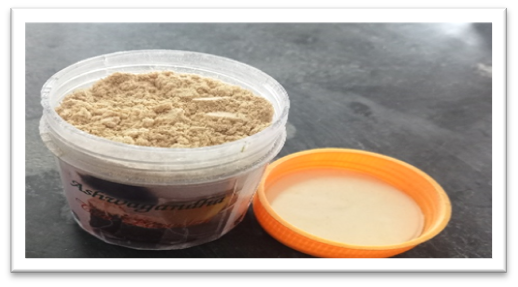The organoleptic evaluation of the Ashwagandha tea blend reveals a consistent and appealing profile. The colour is described as tan and beige, which suggests a natural and earthy appearance, likely due to the presence of Ashwagandha and other herbal ingredients. The odour is characterized as nutty and slightly earthy, which is consistent with the expected aroma of the ingredients. The taste is reported as similar to tea, indicating a pleasant and familiar flavour profile. Overall, the organoleptic properties of the Ashwagandha tea blend are consistent with its natural ingredients and suggest a high-quality product.