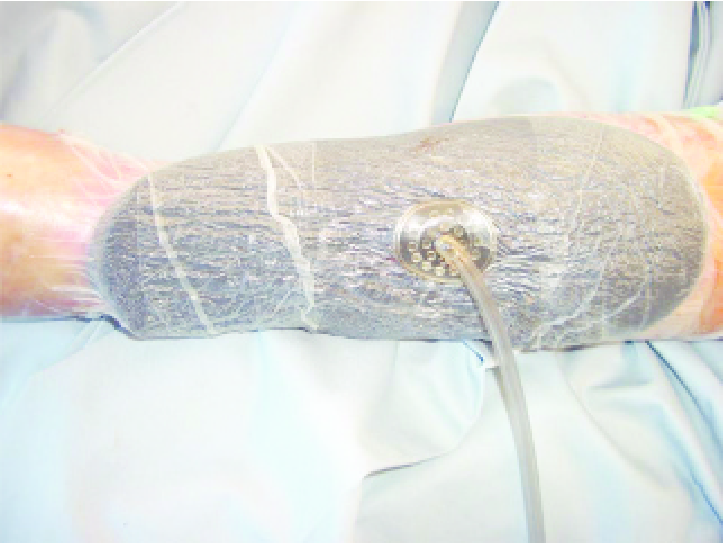1.6.3 Vacuum assisted skin substitutes : VAWC dressing utilizes a closed and sealed system to place negative pressure on a surface and thus produces traction of soft tissues and diminishes the surface and depth of the injury Patients who received VAWC within 3 months of ulcer onset had a greater likelihood of wound healing than those who received VAWC 1 year or later after onset. VAWC can observably diminish water loss of the STSG area, shorten healing time. and duration of hospital stay and lower the recurrence of infection during wound healing. [18-19]